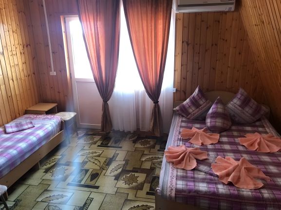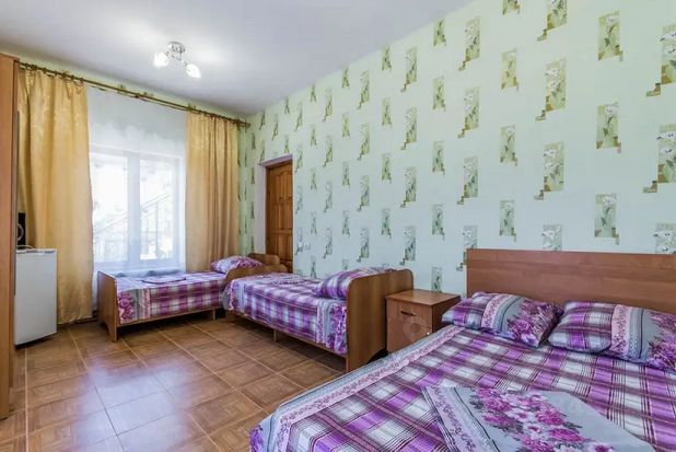 Звонки по телефону возможны только с 09:00 по 22:00 по московскому времени. Не звоните ночью, пожалуйста. Спасибо за понимание! Минимальное бронирование от двух суток. Работаем с мая по октябрь. Апартаменты на 4-м этаже с видом на море в ГД Юг. 50 метров от моря, первая береговая линия Вмещает до 5 человек Апартаменты состоят из 2-х комнат, разделенные аркой. В одной из комнат двуспальная кровать в другой раскладной диван. Собственный балкон со столиком и стульчиками с видом на море. Собственный санузел с душем. Кухни нет, имеется посуда для приема пищи, чайник, холодильник. Есть возможность доп. места для 5го человека в виде еврораскладушки с ламелями. Предоставляем постельное белье, полотенца. Детская кроватка предоставляется по требованию. Размещение с животными возможно по запросу за доп плату в зависимости от вида и породы животного (с бойцовскими породами собак не принимаем) Часто задаваемые вопросы: Общей кухни нет, номеров с кухней нет, микроволновки нет, возможности для приготовления и разогрева пищи не предусмотрено. Мангальной зоны, бассейна и территории у гостевого дома нет Парковочных мест не предусмотрено. Можем предложить варианты платные парковок в непосредственной близости. Трансфера с жд вокзала/аэропорта не предусмотрено.