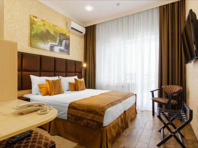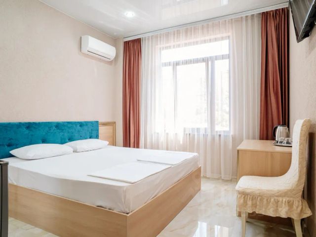 Спорт-отель 3* — современный объект, номерной фонд 167 номеров. На территории комплекса представлены многофункциональные спортивные сооружения. Удобная транспортная доступность — недалеко расположены железнодорожный вокзал, аэропорт, расположение в экологически чистом районе, в непосредственной близости к морю, комфортное размещение и современная инфраструктура, делают его излюбленным местом отдыха для гостей вне зависимости от времени года. Наличие современной спортивной базы позволяет принимать как любителей спорта, так национальные и региональные сборные команды на тренировочные мероприятия и соревнования по различным видам спорта. Здесь созданы все необходимые условия для успешной подготовки спортсменов, в том числе единоборства, теннис, минифутбол, баскетбол, волейбол, гандбол, художественная гимнастика (индивидуальные и групповые упражнения), стрельба из лука, пулевая стрельба, футбол, хоккей, фигурное катание, санный спорт, фристайл, шорт-трек, вольная борьба, прыжки на батуте, мини-футбол, регби и др. Этот современный номер оснащен кондиционером, телевизором с плоским экраном и кабельными каналами и холодильником и располагает собственной ванной комнатой с душем и балконом. В номере: одна кровать (1м х 2м, 1,2м х 2м или 1,4м х 2м)