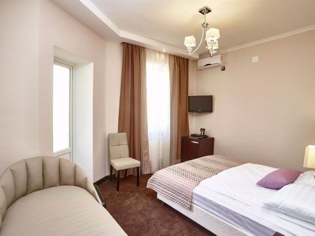 Спорт-отель 3* — современный объект, номерной фонд 167 номеров. На территории комплекса представлены многофункциональные спортивные сооружения. Удобная транспортная доступность — недалеко расположены железнодорожный вокзал, аэропорт, расположение в экологически чистом районе, в непосредственной близости к морю, комфортное размещение и современная инфраструктура, делают его излюбленным местом отдыха для гостей вне зависимости от времени года. Наличие современной спортивной базы позволяет принимать как любителей спорта, так национальные и региональные сборные команды на тренировочные мероприятия и соревнования по различным видам спорта. Здесь созданы все необходимые условия для успешной подготовки спортсменов, в том числе единоборства, теннис, минифутбол, баскетбол, волейбол, гандбол, художественная гимнастика (индивидуальные и групповые упражнения), стрельба из лука, пулевая стрельба, футбол, хоккей, фигурное катание, санный спорт, фристайл, шорт-трек, вольная борьба, прыжки на батуте, мини-футбол, регби и др. Этот современный номер оснащен кондиционером, телевизором с плоским экраном и кабельными каналами и холодильником и располагает собственной ванной комнатой с душем и балконом. В номере: одна кровать (1м х 2м, 1,2м х 2м или 1,4м х 2м)