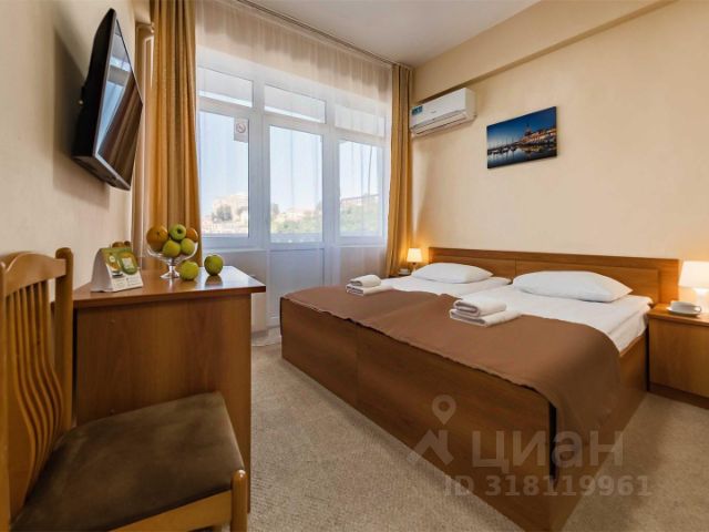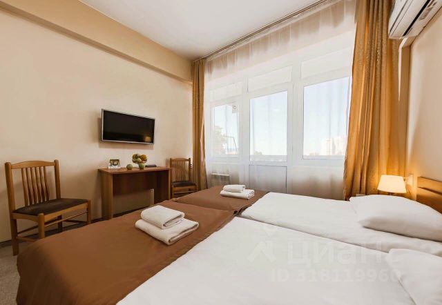 Отель в 1 км от побережья Черного моря и городского пляжа. В летний период до пляжа курсирует трансфер. До Сочинского дендрария можно дойти за 20 минут. Центральный район, пешеходная улица Навагинская, Морской вокзал, концертный зал "Фестивальный" расположены в 4 км. Расстояние до железнодорожного вокзала составляет 4 км, до аэропорта Сочи — 26 км. В отеле 150 уютных номеров категорий Стандарт и Стандарт плюс, в каждом из которых есть все необходимое для комфортного проживания: телевизор, кондиционер, чайный набор, холодильник, письменный стол, шкаф для вещей, собственная ванная комната с феном, комплектом полотенец и косметическими принадлежностями. Из окон отеля открывается прекрасный вид на Черное море, город и Кавказские горы. На всей территории доступен Wi-Fi. В отеле работают кафе "шведской линии" и лобби-бар, в летний период открыт бар у бассейна. На территории к услугам гостей: открытый подогреваемый бассейн, открытый неподогреваемый бассейн, беседки для барбекю, сауна, детская площадка, детская комната, спортивные площадки, зона для настольных игр, настольный теннис, бильярд, анимационная программа для детей и взрослых. Однокомнатный номер с одной двуспальной кроватью в корпусе 2.