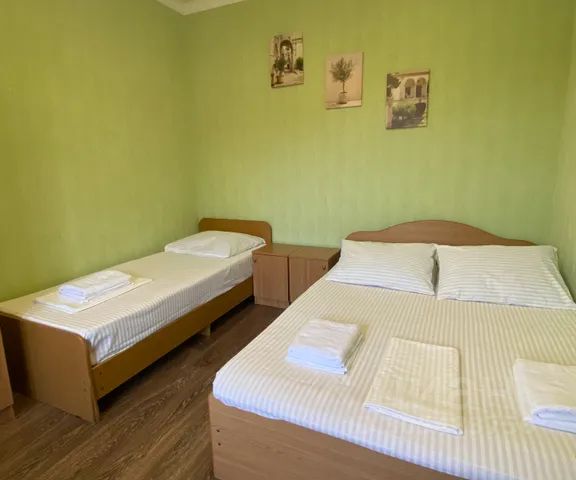3, 2 этаж. 3-х местный номер. Дети принимаются с 5 лет. Комната с тв и конечно кондиционером. Окно в сторону моря. В этой уютной комнате для вашего комфортного проживания две кровати: шириной 120 см и 80 см с ортопедическими матрасами, большой шкаф, чистое постельное бельё. Все матрасы и подушки в доме покрыты чехлами. Что бы ваш багаж был легче в номере есть полотенца для пляжа и душа. Собственный санузел в комнате с душем, унитазом, умывальником, туалетной бумагой, тазиком для сырого белья, чистым ковриком, феном. Комната 11 м кв. + собственный санузел 3, 5 м кв. Чтобы вы всегда были на связи во всем доме есть wi-fi. Есть общая кухня с холодильниками, варочными газовыми поверхностями, микроволновкой, чайником, необходимой утварью и столовыми приборами. Утюг с гладильной доской в общем доступе.