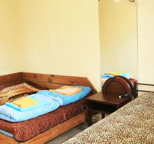 Документы/отчетность предоставляем. Трёхместная сдвоенная комната эконом-класса с придомовой, огороженной территорией. Комната укомплектована вентилятором. Газовое отопление. На этаже общий душ и туалет, утюг и гладильная доска. Общая кухня на территории гостевого дома оборудована плитой, двумя большими холодильниками, чайником, аэрогрилем, пароваркой. Есть вся необходимая посуда и столовые приборы. Большая обеденная зона. Комплектация комнаты на каждого гостя: постельное бельё, банное полотенце. Уборка по требованию. Смена постельного белья и полотенец - один раз в семь дней. В гостевом доме имеется постирочная зона, оснащенная стиральной и сушильной машинами. Питание: Завтрак - 450₽ (с 09:00 до 09:30) Обед - 550₽ (с 13:00 до 13:30) Ужин - 600₽ (с 19:00 до 19:30) Заказы принимаются до 20:00 часов на следующий день. Дополнительные услуги: Стирка с сушкой - 400 руб/загрузка Парковка - 400 руб/сутки Внеплановая замена постельного белья - 1000 руб (1 комплект) В распоряжении гостей, помимо комнаты, так же и благоустроенная, придомовая территория. Во дворе дома предусмотрены три беседки для отдыха на свежем воздухе, две мангальные зоны со всем инвентарём, место для хранения горнолыжного снаряжения. Территория огорожена. Есть фруктовый сад и другое озеленение. Всё очень уютно и по-домашнему.