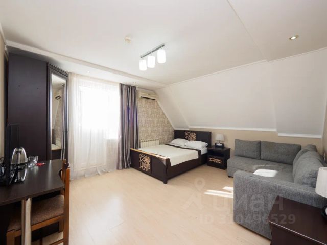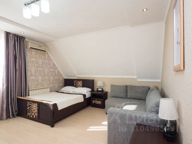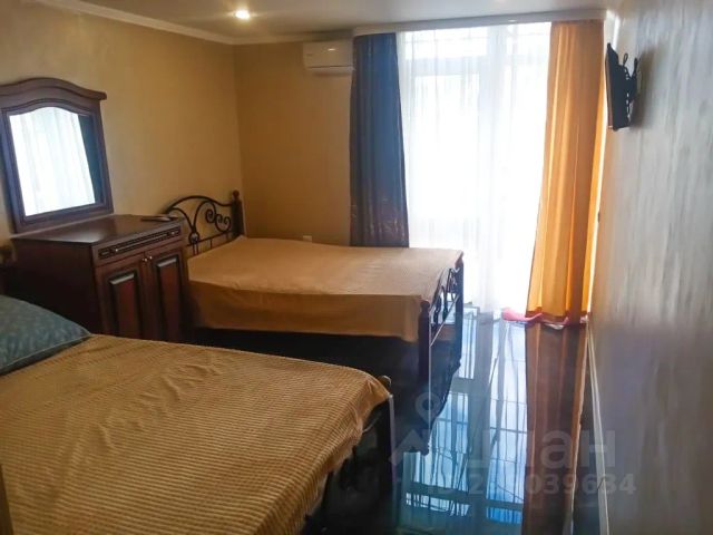 Уютный однокомнатный номер 35 кв. м. на 5 мансардном этаже. В номере: 1 двуспальная кровать, 2 односпальные кровати, трюмо, журнальный стол, набор посуды, стулья, кабельное ТВ, шкаф-купе, холодильник, кондиционер. Ванная комната с душем. Вид на внутренний двор, бассейн, море, горы. Рядом с номером находится обзорная площадка - отрытая терраса с прямым видом на море (для гостей доступна пляжная мебель: стол, кресла, лежаки).
