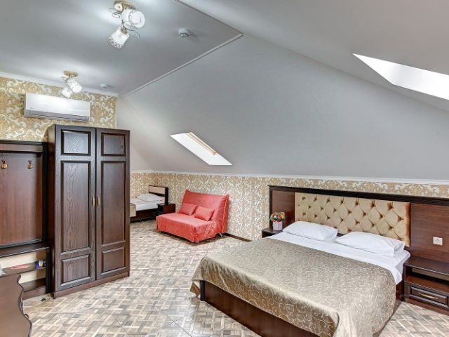 Уютный отель в курортном городе в 10 минутах ходьбы от побережья Черного моря. Расположен в 3 км от центра города. Рядом в пешей доступности расположены: дендропарк Южные Культуры, парк им. Бестужева-Марлинского, набережная и церковь Сурб Саркис. Расстояние до железнодорожного вокзала составляет 5 км, а до аэропорт — 7 км. Для бронирования гостям доступны номера категорий Стандарт, 2-комнатный Стандарт Семейный и Комфорт 2-местный и 3-местный. Номера укомплектованы необходимой мебелью, современной техникой, а также имеют собственный санузел и ванную комнату. В каждом имеется кондиционер, телевизор и шкаф. На всей территории гостевого дома работает высокоскоростной Wi-Fi. По утрам для гостей подают вкусные завтраки. 3х местный номер с удобствами и балконом.