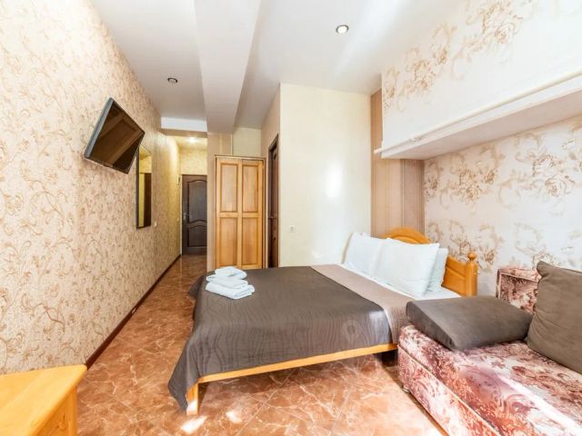 Гостевой дом в п. Дагомыс. Удобное расположение позволяет легко и быстро добраться до достопримечательностей Сочи. До моря всего 10 минут прогулочным шагом. Рядом расположены магазины, кафе, столовая, остановка общественного транспорта. Расстояние до ж/д станции составляет 700 км, до аэропорта Адлера— 42 км. Для размещения отель предлагает номера категорий Стандарт и Стандарт Улучшенный. Все номера оснащены кондиционером, телевизором, холодильником, индивидуальной ванной комнатой с душем. В некоторых номерах есть балкон. К услугам гостей общая кухонная зона, мангальная зона, гладильная зона, доступ к сети Wi-Fi, уличная городская парковка, а также парковка на территории гостевого дома. Номер с двумя односпальными или одной двуспальной кроватью. Есть кондиционер, телевизор, мини — холодильник. Туалет, душ в номере. Дополнительное место еврораскладушка.