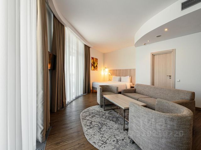 Современный отель в Имеретинской низменности на берегу Чёрного моря. Рядом находится Олимпийский парк и Парк науки и искусства "Сириус". Расстояние до международного аэропорта Сочи — 11 км. Собственный пляж расположен всего лишь в 5 минутах ходьбы от отеля. Благодаря развитой инфраструктуре служит прекрасным местом для семейного отдыха и проведения деловых мероприятий любого масштаба. Для размещения предлагаются 980 номеров различных категорий. Стандарты — отличный вариант для индивидуальных путешественников, друзей или семейной пары. Просторные двухкомнатные и трехкомнатные номера — оптимальный выбор для комфортного размещения семей с детьми или большой компании. Из номеров открываются виды на Чёрное море, Орнитологический парк и Кавказские горы. Отель принимает гостей с домашними питомцами. К услугам гостей ресторан, медицинская клиника, комната матери и ребенка, детская площадка, фирменный магазин "Сириус", лыжная комната (сушка и хранение), оборудованный пляж, парковка. В ресторане "Лира" доступно питание в формате "шведский стол". Для бизнес-туристов доступны конференц-залы и переговорные. В зимний сезон гостям предоставляется трансфер на горнолыжные курорты. Комфортабельные двухкомнатные номера оборудованы всем необходимым для семейного отдыха или проживания компании из пяти гостей. Оснащение номера: в спальне: две кровати размером 90*200 см детская кроватка 60*120 см (по запросу) в гостиной: диван и два кресла телевизор в одной комнате, телефон кондиционер мини-бар для охлаждения напитков санузел совмещен с ванной, оснащен феном лоджия / балкон Wi-Fi