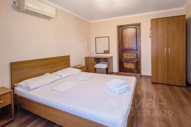 Сдаётся 4-местная комната посуточно и на длительный срок. Семейный полулюкс. Двуспальная кровать — 1 шт., односпальная кровать — 2 шт. Кондиционер, плоский Smart-TV, Wi-Fi, холодильник, раковина, микроволновая печь, кулер с горячей и холодной водой. В номере с/у, тропический душ, раковина. Также есть маленькая зона кухни. Комплект спального белья и полотенец на каждую персону выдается 1 раз на 7 дней. В шаговой доступности "Магнит", аптека, столовая, рынок. До моря 300 м. До вокзала Адлер 1 км, до аэропорта Сочи 3 км. "Олимп парк" в 10 минутах езды на общественном транспорте. Парковка 10 машино-мест. Внимание! Важно! В случае порчи имущества страховой депозит в размере 5 000 руб. будет удержан. Если сумма страхового депозита не покроет ущерб, то будет взиматься дополнительная плата в размере нанесенного ущерба. Страховой депозит возвращается в день отъезда, после уборки номера.