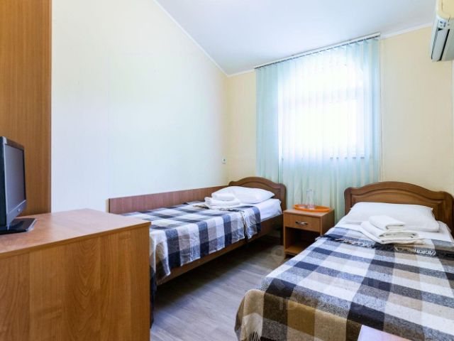 2-х местные номера категории Стандарт с балконом - однокомнатные уютные номера с общим балконом, расположенные на 1 этаже гостевого дома, со всех номеров данной категории открывается потрясающий вид на море, в каждом номере 2-х спальная кровать, шкаф для одежды, прикроватные тумбочки, телевизор, мини-холодильник, кондиционер. Санузел (душ, туалет, умывальник) в номере. На общем балконе возле каждого номера стол и стулья для отдыха. Гостевой дом МиЛар расположен в спокойном, очень живописном и зеленом районе курорта Хоста, куда не доносится суета летнего города и при этом он расположен непосредственной близости морю. С территории гостевого дома открывается умопомрачительный вид на море и 20-метровые столетние сосны. До центра Хосты 3 км, до центра Сочи 6 км, до олимпийского парка 18 км. Остановки общественного транспорта находятся рядом с домом в любом направлении. Для автовладельцев на территории отеля предусмотрена парковка, также везде доступен беспроводной интернет. Во дворе гостевого дома много цветов, есть каркасный бассейн, 2 общих кухни для самостоятельного приготовления еды, а также мангальная зона. Гостевой дом МиЛар представляет собой два 3 х этажных корпуса. Номерной фонд гостевого дома насчитывает 18 номеров. В номерах есть бесплатный WI FI. Есть возможность организовать стирку (есть стиральные машины). Чистота, порядок, комфортные и уютные номера, а также наличие бассейна, мангала сделают Ваш отдых комфортным и приятным. Дополнительные услуги: услуги стирки, парковка. Трансферы от\до железнодорожного вокзала Хосты предоставляются бесплатно с обязательным предварительным заказом. Питание: для самостоятельного приготовления пищи на первом этаже гостевого дома есть общая кухня, оборудованная всем необходимым, а также во дворе есть летняя кухня и мангальная зона. Забудьте о суете больших городов! Представьте себе уголок, где время течет медленнее, а природа щедро делится своими красотами. Это место называется курорт Хоста, оно укрыто от северных ветров горами, дышит свежестью реликтовых лесов и согрето ласковым солнцем. Этот курорт идеальное место для тех, кто ищет оздоровления и релаксации. Воздух, насыщенный ароматами хвои и моря, благотворно влияет на здоровье, а ласковое солнце дарит заряд бодрости и энергии. Хоста это маленький рай, где можно отдохнуть душой и телом, наслаждаясь красотой природы и гостеприимством местных жителей. Это курорт для тех, кто предпочитает спокойствие, немноголюдные пляжи с чистой водой и возможность понежиться на солнце. Даже в самый пик сезона людей здесь гораздо меньше, чем в центре Сочи. В Хосте легко забыть о повседневных заботах. Здесь можно просто гулять по набережной, наслаждаясь морским бризом, или отправиться на рыбалку в уединенные уголки побережья.