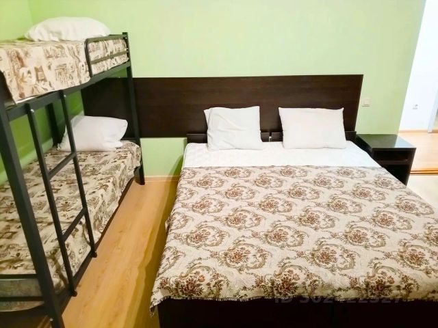 Стандартный улучшенный 4-местный номер с балконом. В номере: Кровати односпальные широкие 2 шт. (или двухспальная кровать 1 шт), двухъярусная кровать длина 2,1 метра, телевизор, шкаф, холодильник, электрический чайник, посуда, собственная ванная комната (душ, туалет), набор полотенец для душа, ортопедические новые матрасы, балкон, кондиционер (Сплит система), сушилка для одежды, утюг на этаже, фены на этаже, стол, стулья, столик для балкона, тумбочки, Wi-Fi. Бесплатно предоставляется: принадлежности для подводного плавания (маска, ласты, трубка), настольные игры (нарды, шашки, шахматы). На этаже: микроволновая печь. Есть летняя общая кухня для самостоятельного приготовления пищи. Полностью оборудованная.