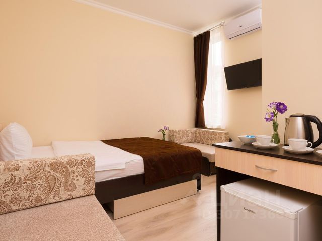 Гостевой дом "Sunrise" - это уютная гостиница в Центральном районе города Сочи, расположенная в 400 метрах от оборудованного городского пляжа. Напротив отеля расположена прогулочная зона, вдоль набережной реки Псахе. В непосредственной близости от гостиницы расположен мини-маркет и рынок со свежими овощами и фруктами, детские площадки, кафе, закусочные. Добраться до Олимпийского парка, Сочи Парка, Красной поляны, Аэропорта можно на электропоезде. Расписание движения можно получить на стойке ресепшн. Остановка общественного транспорта находится в шаговой доступности от гостиницы. Номер категории Семейный наиболее всего подойдёт для семей с детьми, возрастом до 10-12 лет. В таком случае, пребывание будет максимально комфортным. Номер с 1 двуспальной кроватью и 2 диван-кроватями. Максимальный размер диван-кровати в разложенном виде 90см*180см. Оснащение номера: плоский широкоэкранный ТВ, кондиционер, электрический чайник, мини-холодильник. Фен бесплатно по запросу. В каждом номере свой санузел с душевой.