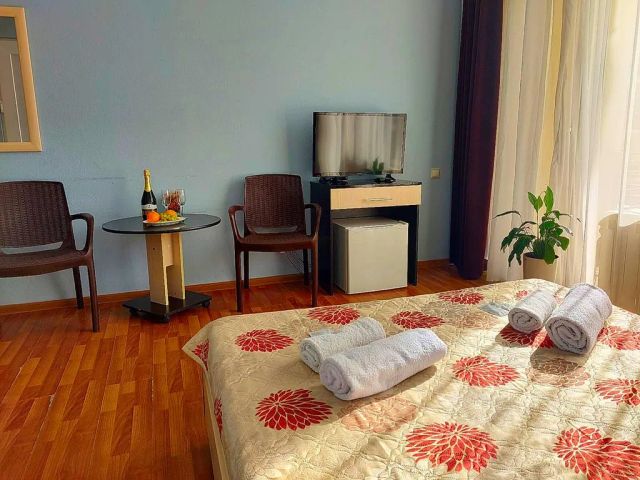 Кто уже побывал в центре современного города-курорта Сочи, тот возвращается именно сюда. Лучшее местоположение - в шаговой доступности лучшие пляжи (муниципальные, частные), достопримечательности, чистота и красота! Привыкли к комфорту? Тогда Вам к нам!!! Вид на море, горы гарантирован! Уютный однокомнатный номер 35 кв. м. на 5 мансардном этаже. В номере: 1 двуспальная кровать, 2 односпальные кровати, трюмо, журнальный стол, набор посуды, стулья, кабельное ТВ, шкаф-купе, холодильник, кондиционер. Ванная комната с душем. Вид на внутренний двор, бассейн, море, горы. Рядом с номером находится обзорная площадка - отрытая терраса с прямым видом на море (для гостей доступна пляжная мебель: стол, кресла, лежаки). На летний сезон 2025 года предлагаем к посуточной аренде уютные, светлые и самое главное — ВИДОВЫЕ номера разной площади, рассчитанных на размещение до 6 человек включительно. Полностью оснащенная всем необходимым кухня, шезлонги, бассейн, детская площадка, столики, парковка — в распоряжении гостей. На территории дома имеется мангал, оборудованный всем необходимым для приготовления шашлыка. Рядом с бассейном или на собственной террасе Вы сможете позагорать на шезлонгах, любуясь видом открытого моря. В нашем гостевом доме небольшое количество номеров (экономов нет), поэтому спокойный и комфортный отдых будет обеспечен. На территории также можно посетить хаммам с бассейном, спа салон, кафе за отдельную плату. Особенностью данного гостевого дома является его местоположение — центральная часть города Сочи! До парка и пляжа Ривьера, Морского порта, Платановой аллеи, Вы сможете добраться на транспорте менее, чем за десять минут. Также муниципальный пляж Альбатрос открыт для круглогодичного посещения. Остановка общественного транспорта, магазин Магнит напротив. Местонахождение нашего гостевого дома подразумевает комфортное передвижение по ровной поверхности. — минимальный срок бронирования 3 ночи. Стоимость указана на сентябрь 2025г. Звоните, пишите, чтобы получить актуальную информацию на интересующие Вас даты.