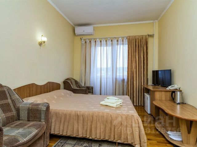 Двухместный номер улучшенный с двуспальной кроватью 18 кв.м. Для гостей есть все необходимое для комфортного отдыха: место для хранения вещей, телевизор,холодильник,кондиционер, чайная станция, удобства, предоставляются туалетно-косметические принадлежности,полотенца.