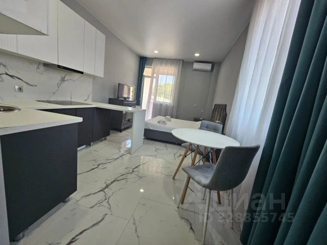 Сдается большая просторная студия с видом на море, закатная сторона, днем не жарко, вечером красиво. Для наших гостей двуспальная кровать с ортопедическим матрасом, большой раскдадной диван, очень удобный. Кухонная зона оборудована всем необходимым: индукционная плита, микроволновая печь, духовой шкаф, чайник, большой холодильник. Посуда и столовые приборы предоставляются. В ванной: полотенца, фен, душевая кабина, стиральная машина. Закрытая территория, круглосуточная охрана, видеонаблюдение. Территория красивая, большая, ухоженная. Море в 100 м от комплекса. Пляж чистый, широкий берег. Ж/д станция в 500 м от ЖК. До центра Сочи 12-15 минут. На территории спортивная и детская площадки. Функционирует бассейн (платно). Детская комната, магазины, кафе на территории. В шаговой доступности кафе, рестораны на любой вкус.