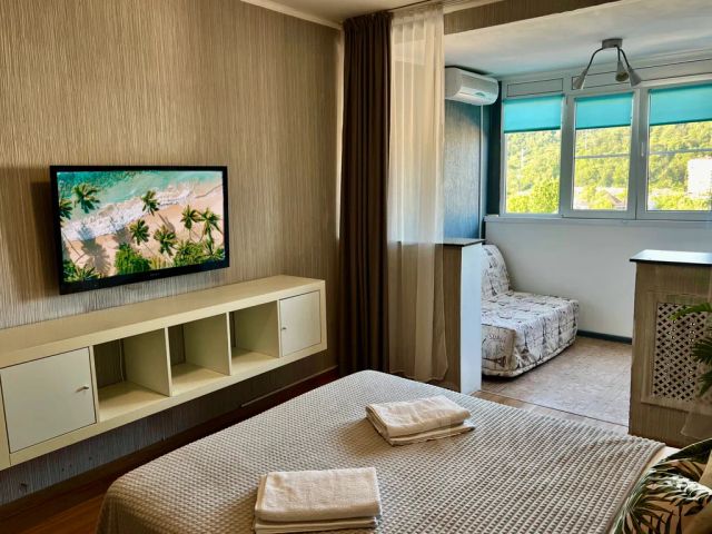 Уютная однокомнатная квартира в Дагомысе! - панорамный вид на горы и город; - светлая чистая квартира с лоджией; - всё для комфорта: кондиционер, стиральная машина, ТВ; - идеально для 45 человек (2 кровати + диван). 18 минут пешком до общественного пляжа и набережной. Спальные места: - двуспальная кровать 140200 см; - односпальная кровать 90200 см; - раскладной диван 140200 см на лоджии (доп. место для 2-х чел.). Все постельные принадлежности свежевыстиранные. Кухня: - газовая плита (2 конфорки) + вся посуда; - микроволновка + газовый чайник; - чай, кофе, сахар, конфеты (в подарок); - холодильник с морозильной камерой; - турка для кофе. Ванная комната: - совмещённый санузел (ванна + туалет); - шампунь, гель для душа, жидкое мыло в миниатюре на 12 использования; - чистые банные полотенца (по количеству гостей); - фен; - достаточное кол-во туалетной бумаги; - уборочные принадлежности, моющие ср-ва для стирки и уборки. Техника и удобства: - телевизор; - кондиционер; - стиральная машина-автомат; - утюг и гладильная доска. Почему выбирают нас?! Идеальная локация: - пляж и набережная с кафе и ресторанами — 20 мин. прогулки; - магазины и аптека — 35 мин. пешком; - ярмарка выходного дня (чтвс) — свежие местные продукты — 7 минут пешком; - всего 15 минут на электричке до центра Сочи; - бесплатная общественная парковка у дома во дворе; - детская площадка во дворе; - чистый подъезд и безопасный двор; - бесконтактное заселение — огромное преимущество для вас! Важно знать: курение запрещено (штраф в размере залога за запах); тишина после 23:00; заселение с 14:00, выезд до 12:00. Залог 2000 ₽ (возвращается в день выезда или на следующий день на карту после проверки квартиры). Ранний заезд / поздний выезд — доп. услуга по согласованию. Точную стоимость и возможность уточню индивидуально по вашему запросу. Пишите и бронируйте — отвечаю быстро! Отдыхайте с комфортом уже сегодня!