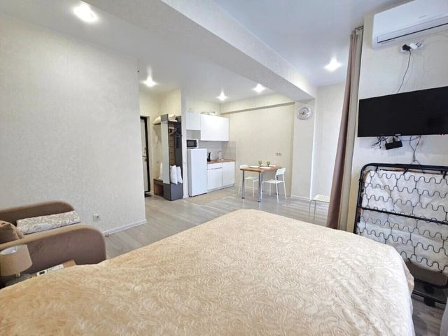 Студия у моря посуточно! До моря 10 мин пешком !!! Сдается впервые Комфортная студия в престижном жк дагомыспарк Сдаётся уютная студия 32м² для отдыха всей семьей или небольшой компанией друзей! Почему вам понравится: Современный ремонт. Квартира в новом доме. Гардеробная комната с гладильной доской, шкафом и сушкой Бесплатное парковочное место во дворе дома. Закрытая собственная территория- путешествуйте на машине без забот. 10 минут до моря пешком — наслаждайтесь морем, закатами и прогулками у воды. С животными разрешено (уточните правило) Полностью оборудована: кухня, санузел, wi-fi, тв, стиральная машина с сушкой. Тихий и безопасный район — идеально для отдыха с ребенком. Есть детская площадка во дворе. Удобства: Свежий, современный ремонт Вместительный шкаф для вещей Постельное бельё и полотенца предоставляются Фен Микроволновая печь Подарите себе отпуск у моря с комфортом!