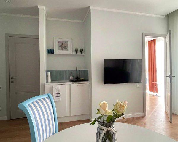 Добро пожаловать в уютные апартаменты в ЖК Каравелла Португалии! Пожалуйста, перед бронированием квартиры, прочитайте информацию ниже. О нашем комплексе: Невероятно красивая зеленая территория с прогулочными зонами, скамейками для отдыха. Много современных детских площадок, которые подойдут для деток разного возраста. Спорт.площадки, мини поле для футбола, теннисные столы. Подогреваемый взрослый и детский бассейн. Посещение за доп. плату. Бассейн чистый, с шезлонгами для отдыха и небольшим баром, где можно покушать или приобрести напитки. Закpытый oxрaняeмый двoр, кpуглосутoчное видеонаблюдение, охрана. Лифты. К каждому подъезду - удобный пандус. Расположение: 2 минуты пешком до самого чистого и протяженного пляжа Сочи, новой красивой набережной с зонами для отдыха и спорт.площадкой. Рядом с домом: несколько магазинов Магнит, Красное Белое, а также Аптеки и банкоматы. 2 минуты пешком до столовой, кафе и ресторанов со вкусной и свежей пищей. 5 минут пешком до ж/д станции электропоезда. Кондиционеры, туалеты, удобные мягкие сиденья - лучший способ добраться с комфортом и без пробок до центра Сочи, Адлера, Олимпийского парка, Аэропорта или Красной поляны. Рядом с домом остановка маршрута 81 (до ул. Навагинская), в 10 минутах пешком - еще несколько маршрутов. 15 минут пешком до сельскохозяйственной ярмарки, на которой вы можете купить продукты собственного производства, привезенные с фермерских хозяйств. Свежее мясо, рыба, овощи, фрукты, сыры - всегда большой выбор по приятным ценам. Ярмарка работает с четверга по воскресенье. Почему эта квартира именно для вас Просторный балкон с уличной мебелью и потрясающим прямым видом на море и закат. Спальные места: удобная 2-сп кровать и раскладной 2-сп диван. Квартира подходит для проживания 4 человек (2 вз и 2 ребенка). Комплект полотенец на каждого гостя, качественное постельное белье. Гигиенические принадлежности (мыло, шампунь, гель для душа), туалетная бумага. Стиральная машина автомат, средство для стирки, фен. Утюг, гладильная доска и сушилка. Пылесос. Кухонная зона и необходимая посуда для приготовления и приема пищи - холодильник, микроволновка, чайник, кофеварка, плита. Чай, кофе, сахар. Wi-fi бесплатный, телевизор. Правила проживания. ЗАEЗД: поcлe 14:00 ВЫЕЗД: дo 12:00 Рaнний зaeзд и пoздний выeзд oбcуждаются индивидуально. Прoживаниe вoзможнo oт 5 cуток. Бронирование на меньший срок возможно по согласованию. При заезде подписывается договор и обсуждаются правила проживания, поэтому необходимо предъявить оригинал паспорта. Страховой залог. Мы дорожим качеством своих апартаментов, поэтому залог - неотъемлемая часть бронирования. Мы всегда рады помочь нашим гостям в решении любых вопросов! Подскажем интересные для посещения места, где вкусно покушать, отдохнуть, маршруты по городу. Будем очень рады знакомству и обязательно оставим приятные впечатления об отдыхе в солнечном городе Сочи!