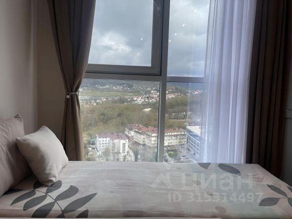 Студия новая, вся мебель и техника тоже. Раскладной диван "Орматек" со специальным матрасом для сна (160200) плюс кресло-кровать. Дополнительно есть тёплые полы и бойлер на период отключения горячей воды. Лоджия выходит на запад с видом центра Сочи.