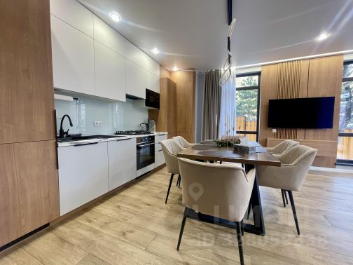Просторная уютная кухня-гостиная с большим телевизором 65 дюймов, удобным диваном, обустроенная качественной техникой, трехступенчатым фильтром воды, посудой, текстилем, с удобным для работы светом, столовой группой, техническим шкафом.