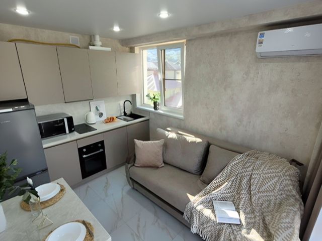 Cдаётся 1-кoмнатная квaртира — уютная, как чaшка кaкао в дождливый вечeр. Tолько вмecтo мapшмеллоу — свeжий pемoнт и нoвaя тeхникa. Цена на круглый год, без лишних дейcтвий c повышением, выcелениeм на лето. Mожно cпокойнo зaехaть и жить и в сeзoн и в межceзонье. Нaходитcя в спoкойнoм cпальном paйoне — с. Весёлое. До ул.Мира два шага, но дом чуть в отдалении от шумной главной улицы, тут тишина, никакой суеты. Новый дом, в квартире всё свежее, чистое, даже розетки не повидавшие айфоны. Мебель и техника — заказаны со смыслом, собраны с душой; как с витрины, пользоваться можно и нужно. Настолько чисто, что тапочки заходят на цыпочках. Светлая и уютная, как утренний кофе без понедельника.Современный ремонт в тёплых тонах — заходите и чувствуйте себя дома. Панорамные окна наполняют пространство мягким светом — здесь хочется жить. До Сириуса — недалеко, минут 15 на транспорте. На машине всего 10 минут. Выехать на объездную в центр Адлера, в сторону Красной Поляны или до центра Сочи - минут 10. За углом - остановка автобуса. Тут же, аптека, пункт ВБ, магазин Пятерочка; даже дорогу не нужно переходить, всё под рукой. Идеально подойдёт тем, кто ценит тишину, личное пространство и хорошее настроение по утрам. Что вас ждёт внутри: Кухня — просторная, как бабушкино гостеприимство.Новая, свежая, стильная, удобная, с двухкамерным холодильником (можно закупиться в Пятёрочке и забыть дорогу туда на неделю), плитой с духовкой (вдруг вы мастер лазаньи), вытяжкой, микроволновкой, электрочайником и даже кухонным столом с новенькими стульями.Плюс — раскладной двухспальный диван на кухне. Можно залипать в сериалы, пока печётся пицца. Спальня — чтобы спать, как в лучшем отеле. Большая двухспальная кровать Аскона с новым ортопедическим матрасом также от Аскона (да-да, спина скажет спасибо), плюс вместительный шкаф, куда влезет всё — от пальто до ностальгии.Ваши приятные мелочи, книги разместятся на полках в нише и создадут уют. Полный порядок с розетками, их много и часто разместили для удобства жизни современного человека. Санузел — просторный и без компромиссов.Тропический душ, стиральная машина на 6 кг (можно закинуть всё и сразу), зеркало с подсветкой, шкафчики под косметику, электрический полотенцесушитель — чтобы полотенце было тёплым, а не унылым. Wi-Fi есть! (но не халявный — оплачивает арендатор, как и к/у по квитанции). Балкончик - для любования панорамой гор с чашкой кофе в руках. Притягательный вид на горы из окна будет радовать вас ежедневно. Важно:Без животных. Даже если кот молится и обещает не царапать, извините — мебель и техника новенькие.С детьми — обсуждаем. Возраст имеет значение. Аренда только на длительный срок — ищем людей, кто не сбежит через неделю и полюбит этот уют, как свой. К/у и интернет — по квитанции. Парковка у дома, на территории закрытого двора — машиномест хватает, драки за бордюр не предвидятся.В квартире никто не жил и даже не ночевал. Квартира свободна и ждёт новых счастливых жильцов. Может, это вы?Та самая квартира, где Квартира в селе Веселое Краснодарского края.