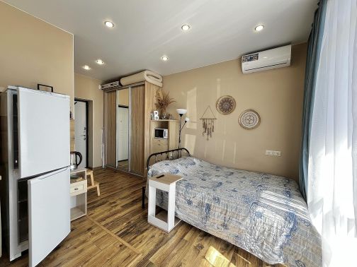 В студии установлена вся необходимая техника: кондиционер, чтобы поддерживать комфортную температуру, холодильник для ваших продуктов, телевизор для отдыха и стиральная машина для удобства. Мебель на кухне и в комнате сделает ваше проживание ещё более комфортным. Ванная комната оснащена душевой кабиной, что позволяет быстро освежиться в любое время. Дом находится в хорошем состоянии, что гарантирует комфортное проживание. Для вашего автомобиля предусмотрена наземная парковка, поэтому можно не беспокоиться о месте для машины. Приятным бонусом является наличие балкона, где можно наслаждаться утренним кофе с видом на улицу. Рядом с домом расположены магазины, поэтому все необходимые покупки можно сделать без лишних усилий. Хорошая транспортная доступность позволит вам легко добраться до любой точки города. Условия сделки прозрачные и удобные: аренда от собственника, без комиссий. Пожалуйста, обратите внимание, что залог и предоплата обсуждаются индивидуально. Апартаменты отлично подойдут для одного человека или пары. Снять квартиру на улице Кутаисская в городе Сочи на длительный срок.