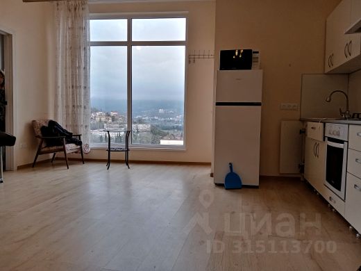 Большая комната-студия. Имеется диван раскладной, шкаф для одежды, холодильник, варочная плита, кухонная мебель, утюн. Отдельной комнатой умывальник и стиральная машинка и сразу вход в совмещенный санузел (душевая и унитаз)