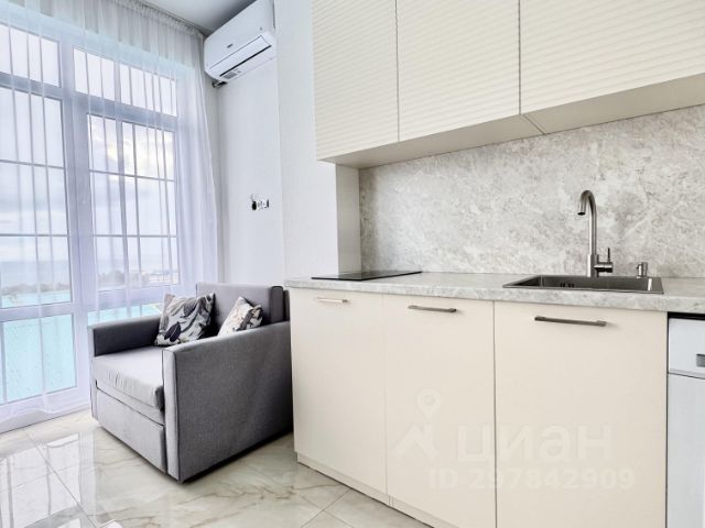Студия в Адлере с прямым видом на море! Район пансионата Изумруд. Полностью новый ремонт, новая мебель и техника! В квартире есть все необходимое для проживания: - два дивана (2 спальный и 1 спальный) - кухонная зона - электроплита - холодильник - микроволновая печь - кондиционер - стиральная машинка - ТВ - WiFi - тёплый пол - водонагреватель - посуда - утюг - гладильная доска - фен Огороженный двор с бесплатной парковкой для жильцов. Стоимость 30 000 руб./ мес + КУ. Залог 30 000 руб. Сдаём до мая 2026 включительно. Без животных. Возможно продление на круглый год с повышением на лето.