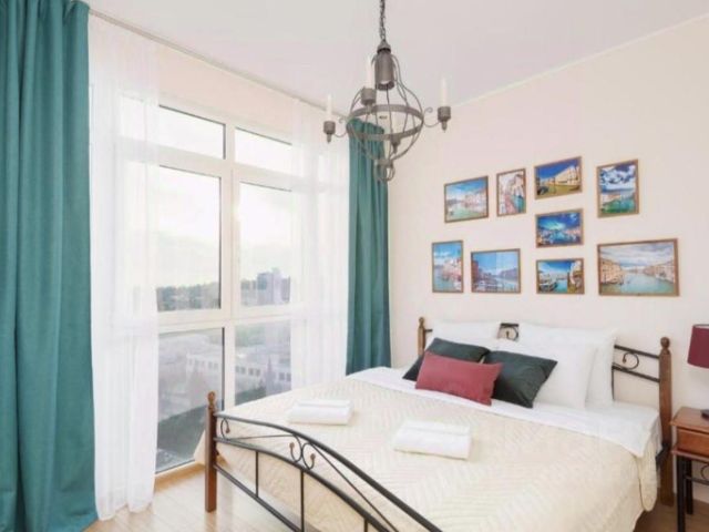 "Эко-парк Вотчина" загородный комплекс с ухоженной территорией, в тихом живописном месте, вдоль берега реки Западный Дагомыс. Отличное место для комфортного семейного отдыха, с высоким уровнем сервиса. Вокруг эко-парка множество интересных природных маршрутов и достопримечательностей: музей-усадьба И.А. Кошмана, Дагомысские корыта, Солохаул парк, Чайные домики в Уч-Дере, водопады, конные прогулки, медовые пасеки, а в шаговой доступности находится футбольный комплекс и пейнтбольный парк. Эко-парк расположен в 5 км от центра пос. Дагомыс по асфальтированной дороге. Расстояние до ближайшего морского пляжа и ж\д Дагомыс — 5 км. Расстояние до центра Сочи — 15, а до аэропорта — 47 км. На территории эко-парка представлены уютные А-Frame домики, просторный 2-х этажный коттедж с собственной баней и бассейном и уютные апартаменты с полноценными кухнями. Внутри все объекты размещения оборудованы всем необходимым для комфортного проживания. Во всех номерах постельное белье, комплекты полотенец, отельная косметика, одноразовые тапочки, чайный набор. К услугам гостей в эко-парке имеются: уютное кафе с блюдами русской и кавказской кухни, 3 индивидуальных банных комплекса, пикниковая зона. На территории организован пляж с 2 открытыми бассейнами, оборудованный шезлонгами, раздевалкой и летней душевой. Для маленьких гостей есть детская площадка с мягким покрытием, качелями и горкой. В летний период по выходным работают аниматоры и проводятся пенные вечеринки. Стойка регистрации работает круглосуточно, уборка в номерах проводится каждые 3 дня. Для гостей на машине организована парковка. Апартаменты "Люкс", в современном эко-стиле с двумя спальнями и кухней-гостиной. Апартаменты оснащены всем необходимым для комфортного проживания: санузел с душевой кабиной, сплит-система, телевизор, полноценная кухня с варочной панелью и посудой. Номер расположен на втором этаже, подъем по лестнице.