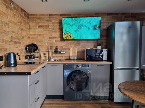 - Бытовая техника (варочная поверхность, вытяжка, холодильник, электрочайник, капсульная кофеварка, свч-печь, телевизор с эфирными каналами, кондиционер);