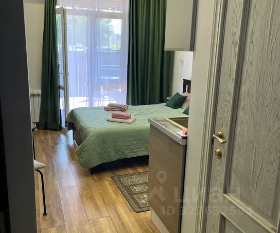 Стильная студия для 3-4 человек в новом ЖК гринсейлпарк в Олимпийском парке у моря (Сириус). До пляжа 15-20 минут ходьбы, до Абхазской границы 1,2 км. Окна выходят на южную сторону с видом на Олимпийский парк и море. В квартире светло, уютно, для вашего комфорта сделано зонирование пространства. Студия поделена на две части: зону гостиной с кухней и спальню с рабочей зоной. О Студии. В вашем распоряжении два двуспальных дивана, вместительная кухня с духовкой, полноценным холодильником, микроволновой печью, кофеваркой и посудомоечной машиной. В квартире есть вся необходимая посуда для приготовления, бытовые принадлежности, Wi-Fi, интернет телевидение, два кондиционера. В ванной комнате электрический полотенце-сушитель, стиральная машина, фен и другие принадлежности. О Локации. Жилой комплекс удачно расположен в пешей доступности к морю, олимпийским объектам, поющим фонтанам, парку развлечений Сочи парк с дельфинарием и аттракционами, близ абхазской границы. Так же в 3 мин. Ходьбы от остановки автобуса и в 2 мин. От комплекса с магазинами Пятерочка, Магнит, Магнит-косметик, фруктовой, овощной, мясной и рыбной лавки, парикмахерской, 2 кафе, большим строительным торговым центром. О Комплексе. Во дворе для малышей детская площадка, для взрослых — зона work — out, на территории достаточно места, чтобы кататься на самокате, велосипеде, играть в бадбинтон. Территория комплекса закрыта, круглосуточное видеонаблюдение, ландшафтный дизайн, автопарковка рядом с комплексом бесплатная. Расстояния на Авто. - до моря — 5 мин. - до аэропорта — 15 мин. - до абхазской границы — 3 мин. - до Олимпийских объектов — 5 мин. - до ближайшего Аквапарка: В Адлере — 15 мин., в Красной поляне (Горки Город или Эсто-садок) — 45 мин. - до парка развлечений Сочи Парк — 5 мин. - до Красной поляны 35 мин. Условия Размещения. Стандартное время заселения — 15:00, выезд — 12:00. Другое время по согласованию.