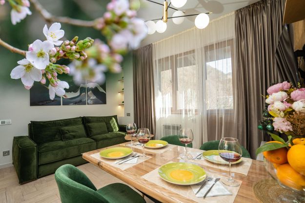 Бронирование от 2 суток. Двухкомнатные апартаменты расположены с посёлке Эстосадок. Изолированная спальня с двуспальной кроватью и кухня-гостиная с раскладным диваном. В квартире есть всё необходимое для комфортного проживания: современное кухонное оборудование, набор посуды и столовых приборов. Имеется оборудованная зона для хранения лыж. Гостям предоставляются постельное белье и полотенца. Запрещено курить, въезд с домашними животными. Залог в размере суточной стоимости апартаментов возвращается при выезде. В распоряжении гостей wi-fi, фен, утюг, телевизоры с плоским экраном и кабельными каналами, оборудованная кухня с микроволновой печью и холодильником, кондиционеры, стиральная машина. На территории апартаментов обустроена бесплатная парковка. Для детей имеется игровая площадка. Близость ко всей инфраструктуре. Напротив дома казино, ТЦ Горки Город Молл, рестораны, магазины, аптеки, бары, кафе, столовая, автобусная остановка. Прямой доступ к пунктам проката лыжного снаряжения, подъёмнику на курорт "Красная Поляна". Расстояние до всесезонного горного курорта Роза Хутор 3,5 км. Лыжно - биатлонный комплекс Лаура находится в 5 км, а до развлекательного и делового центра Галактика 10 минут на транспорте. До международного аэропорта Сочи 37 км. Для удобства гостей заселение предусмотрено дистанционное (без привязки к личному времени). Подробнее о цене узнавайте по телефону. Будем рады видеть Вас нашими гостями! При бронировании менее 5 суток дополнительно оплачивается финишная уборка 2000₽.