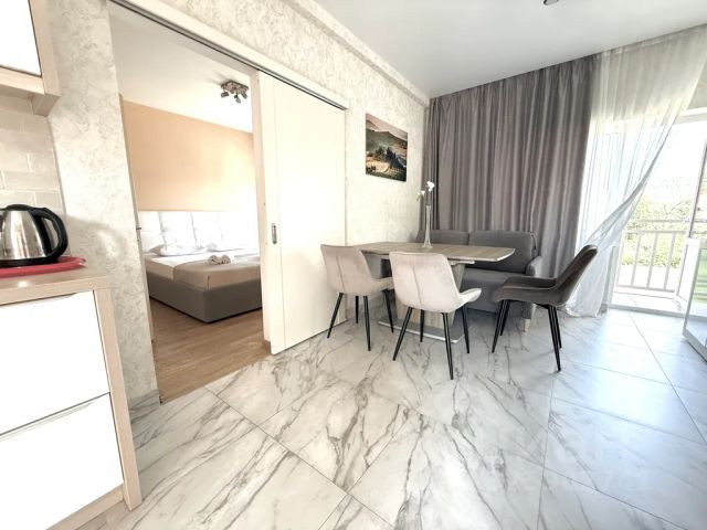 Новые апартаменты с полноценной кухней, балконом. Панорамные окна с видом на город. До моря всего 120 м, огороженная территория со своей охраняемой парковкой и подогреваемым бассейном. Апарт отель открыт в 2025 году.