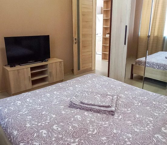 Общая площадь 19 кв.м., с балконом, выходящим во двор. Дом новый, сдан в 2019 году. Косметический ремонт в квартире сделан в мае 2024 года, все новое и свежее. Все необходимое для комфортного проживания троих человек имеется: удобная кухня со всей техникой, обеденная зона, двуспальный диван - кровать и кресло - кровать на одного человека . Смарт телевизор, микроволновка, стиральная машинка, утюг, гладильная доска, Wi-Fi, электрические тёплые полы, кондиционер, бойлер, бесплатная парковка.