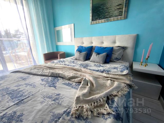 Большая 2 х спальная кровать 1600 2000, раскладной диван 14002000. Кондиционеры в зале, кухне, спальне. Балкон с видом на море.