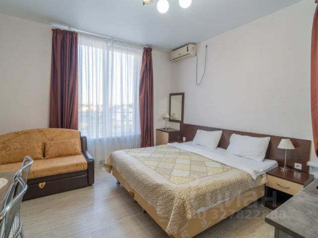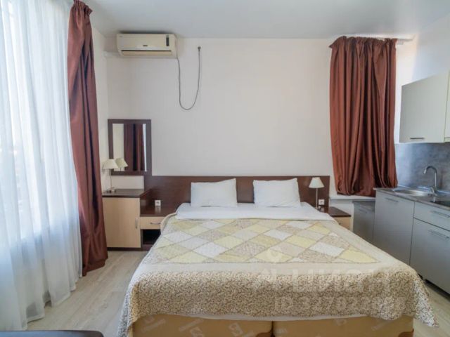 Кухня-студия с кроватью 160 х 200 см. Отдельная спальня с кроватью 160 х 200 см. Ванна с функцией гидромассажа (ванна ДЖАКУЗИ). Полноценная кухонная зона со всем необходимым для приготовления и сервировки.