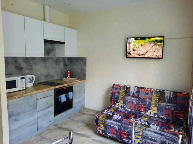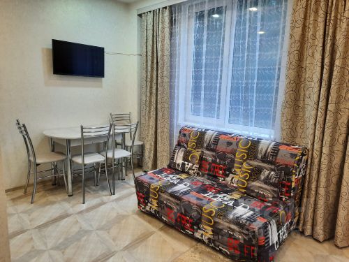 В квартире качественный ремонт, установлена сплит-система кондиционирования воздуха, подогрев пола. Всего могут расположиться с комфортом от 2 до 4 гостей: 2 человека на двуспальной кровати и 2 человека на раскладном двуспальном диване. К вашим услугам оборудованная кухонная и обеденная зона, холодильник, стиральная машина, посудомоечная машина, духовой шкаф, полный набор посуды, постельное белье, полотенца, фен, ТВ и высокоскоростной интернет (Wi-Fi).