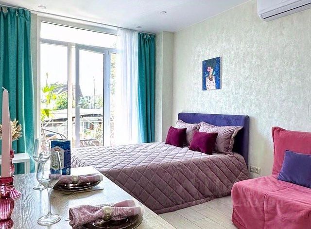 Студия в новом апарткомплексе бизнес-класса Resident. Находится в прекрасном районе с развитой инфраструктурой как для романтического, так и семейного отдыха. В студии отсутствует какой-либо неприятный запах. Рядом все активные стройки завершены. Нет посторонних запахов канализации. Рядом ж/д вокзал, аэропорт, выезд в Абхазию и Красную Поляну. Совсем недалеко Олимпийский комплекс с его парками, ресторанами, современными пляжами европейского уровня. Район расположения апартаментов облегчит отдых и сэкономит Вам время на перемещения. Ежедневно из Сочи в Адлер пробка на час. Поэтому, прибывая из аэропорта или ж/д вокзала, Вы намного быстрее попадете к месту отдыха. Гарантированно не опоздаете в аэропорт, а до ж/д вокзала даже можно дойти пешком. На закрытой территории комплекса всегда есть свободные места для парковки автомобилей. До пляжа пешим шагом 15 минут под тенью тропических пальм мимо многочисленных кафе на любой вкус и кошелек, ресторанов, фруктовых рынков. Здесь есть вся развитая развлекательная прибрежная туристическая инфраструктура. Продуктовые магазины, промышленные павильоны - все рядом. От аппарткомплекса до Wildberries 250 метров, до OZON 700 метров. Поблизости есть необходимые продуктовые магазины. Доставка из ВкусВилл, Самокат, Яндекс.Еда, пицца и роллы. Состояние ремонта, мебели и принадлежностей находятся в идеальном состоянии. В студии имеется всё необходимое для жизни и отдыха: кондиционер, холодильник, смарт-TV, микроволновая печь, варочная панель, духовой шкаф, фен, посуда, бокалы, сушилка, утюг, гладильная доска, стиральная машина, постельные принадлежности, полотенца, Wi-Fi. Французские окна с видом во двор. Предложение ориентировано на 1-4 гостей. Кровать шириной 140 см с ортопедическим матрацем и раскладной мягкий диван шириной 120 см. На 1-2 суток бронь только по полной предоплате.