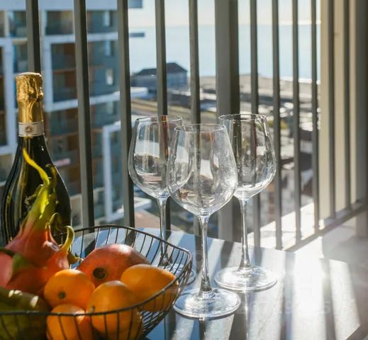 Балкон с потрясающим просторным видом на море, горы и ОК Дагомыс.