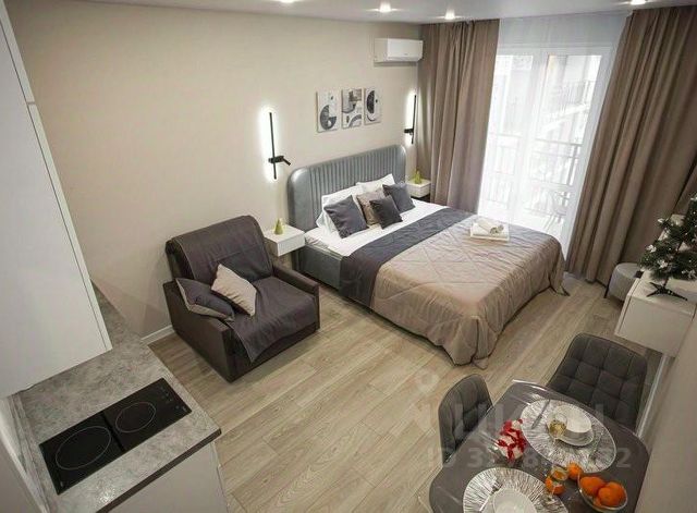 Апартамент 27 кв м. Подходит для клиентов с автомобилем. До моря ехать 10 мин, до горнолыжных курортов "Красная поляна" и Роза хутор" 35-40 мин на машине. Отличная возможность подышать морским воздухом и насладиться катанием на горнолыжных курортах. Апартамент расположен на 2-ом этаже 2-х этажного дома. Панорамные окна открывают великолепный вид на море и окрестности. Вход в апартамент отдельный. В доме ещё 3-и таких же апартамента, в которых проживают люди, т. е. У вас на участке будут соседи. В апартаменте 2-х спальная кровать, стеллаж, кухонный гарнитур, стиральная машина, кондиционер. В кухонной зоне чайник, электрическая плита, микроволновка, холодильник, посуда. Санузел совмещенный, в санузле унитаз, тумба с раковиной, душ. На территории есть бассейн, зона отдыха, зона барбекю, парковочные места. С животными можно по согласованию. В пешей доступности супермаркет магнит, ozon, wb, местные продуктовый и хозяйственный магазины. Работает доставка продуктов и шашлыков из местного магазина. Также есть доставка ozon и yandex. Также в деревне есть банный комплекс, прокат лошадей. До жд вокзала Адлера, пляжей известия, изумруд, курортного городка, дельфинария, океанариума - 4-5 км. В центр Адлера и к ЖД вокзалу ходит автобус N 140 по расписанию. От ЖД вокзала к горнолыжке ходит автобус 105э (экспресс), подъезжает непосредственно к подъемникам в Красной поляне и в Роза хутор.