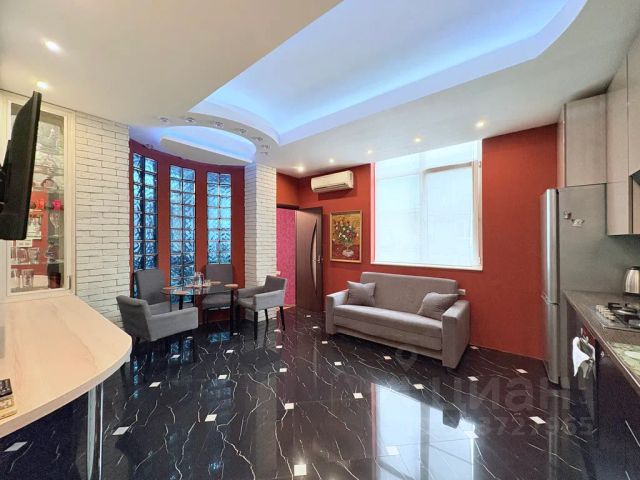 Студия с дизайнерским ремонтом рассчитана на 3 гостей.