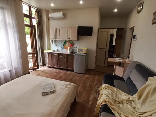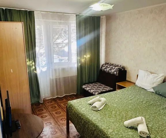 Сдаётся уютная евродвушка, расположенная в новом мини-комплексе. Частный сектор в тихом месте, граничащем с лесом. Отлично подходит для небольших компаний и семей с детьми. 1) спальные места: 1. Двухъярусная кровать (низ — 120 см * 200 см, верх — 90 см * 200 см) 2. Раскладной диван (160 см * 200 см) 2) укомплектованная кухня (варочная панель, холодильник, микроволновка, полный набор посуды) 3) техника: фен, утюг, пылесос, кондиционер, телевизор, стиральная машина 3) чистое постельное бельё и полотенца 4) интернет 5) средства личной гигиены и моющие средства. На территории находится зона общего пользования (беседка с мангалом и тандыром) и русская банька (с хамамом, джакузи и подогреваемым бассейном, оплачивается отдельно). С июня по сентябрь выставляем большой каркасный бассейн 4*2,5*125.