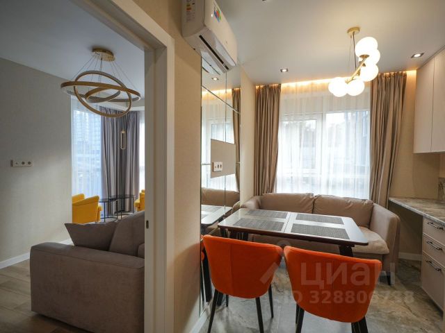 Сдается на длительный срок! С повышением цены на летний период до 50000 руб. БЕЗ КОМИССИИ! ЖК бизнес-класса Кислород удобно расположился в новом районе Сочи, откуда открываются великолепные пейзажи в обе стороны на море, горы и окрестности города. Студия детально продумана и укомплектована: 1. Двуспальный ортопедический диван - для лучшего сна или просмотра любимого фильма, вместительный удобный шкаф для вещей и одежды. 2. Балкон с невероятным видом - позволит испытать ощущения истинной свободы, а также наслаждение от потрясающего до глубины души - лучшего вида на предгорье Кавказа. 3. Выделенная обеденная зона с барной стойкой и барными стульями. Оборудованная кухня в современном стиле: холодильник, встраиваемая варочная панель, вытяжка, микроволновая печь, чайник, посуда для приготовления, столовая посуда и приборы, кухонные принадлежности. 4. Современная техника и электроника: огромный ЖК-телевизор, быстрый стабильный WIFI, сплит-система, стиральная машина, фен, утюг, гладильная доска, сушилка для белья. 5. Сан-узел: душ, туалет, большое зеркало. 6. В стоимость проживания включено: комплект белого постельного белья и полотенец, разовый гигиенический комплект (мыло, гель для душа, шампунь). Территория комплекса является закрытой от посторонних, находится под постоянной охраной и видеонаблюдением, корпуса оборудованы 2 скоростными лифтами Otis. Комфортабельные апартаменты в современном районе предназначены для гостей, желающих отдохнуть от городской суеты и восстановить свои жизненные силы. Наши апартаменты оборудованы качественными спальными местами, современной бытовой техникой и электроникой, белым постельным бельем и пушистыми полотенцами. На территории комплекса для полноценного отдыха и разнообразного досуга предусмотрены: - Качественные спортивные и детские площадки-столы для настольного тенниса, баскетбольные, футбольные площадки, Скейт-парк; - отдельные зоны отдыха, шезлонги для получение солнечных ванн; - открытые террасы с газонной травой, клумбами и живой растительностью. Район отличается высокой доступностью к основным достопримечательностям города Сочи на автомобиле: - ЖД вокзал Сочи (~10 мин) - Олимпийский парк (~40 мин), - Аэропорт Сочи (~40 мин) - Красная Поляна (~1 час 10 мин). - До городских пляжей с прозрачной водой - на авто 7 мин. - До парка Дендрарий (центр города!) на авто 7 мин. Будем рады принять Вас в сети современного жилья Гости-24! Сдаю квартиру с мебелью в районе Хостинский в городе Сочи.