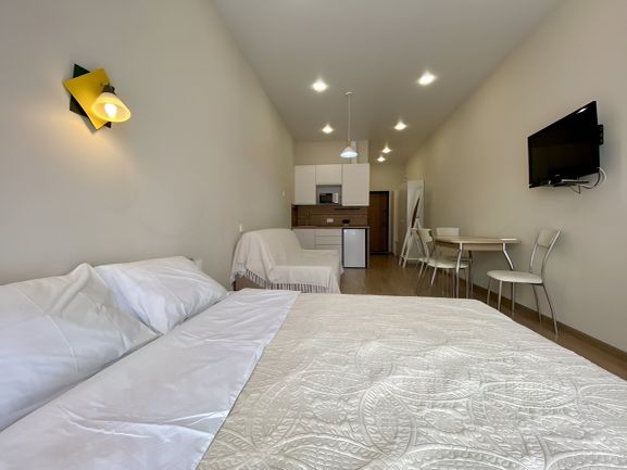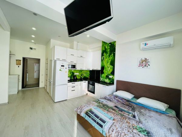 Идеальное место для тихого спокойного отдыха. Квартира-студия в Сочи на Мамайке, в дачном массиве между Дагомысом и Сочи. Площадь 27 м.кв. Этаж 3/5. Высота потолков 2,9 м. С/у совмещённый, с ванной, плитка. В квартире есть кондиционер, шкаф, 2-спальная кровать, 1-спальная кровать, возможна одна дополнительная кровать, новый большой холодильник, эл.плита, эл. вытяжка, кухонный стол, табуреты, кухонная мебель, эл. чайник, микроволновка, посуда, бойлер (горячая вода). Есть WIFI. Отдельный вход на 3 квартиры. Балкона нет. На пляже всегда мало людей, море всегда чистое. До моря 90 метров. Набережная для прогулок отсутствует. До ближайшего полноценного магазина - 20 минут пешком. Ближайшие кафе - на пляже Дагомыса, до них также 20 минут пешком. В 10 минутах пешком от станции ж/д 73-й км. Оттуда идут прямые электрички на Красную поляну, аэропорт, Олимпийский парк. До ж/д вокзала Сочи 15 минут. Идеально, если Вы планируете отдыхать с автомобилем. В этом случае Вы всегда мобильны. Достопримечательности, развлечения, магазины и т.д. для Вас доступны в любое время. Размещаем гостей на срок не менее 1 недели.