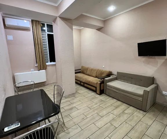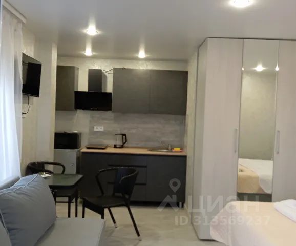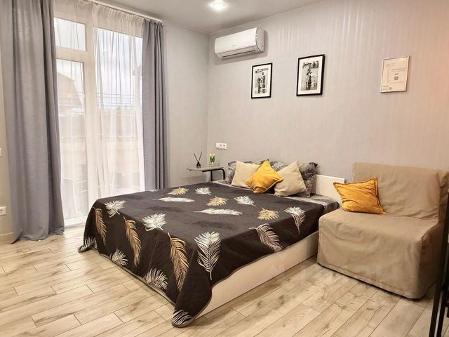 Общая площадь 19 кв.м., с балконом, выходящим во двор. Дом новый, сдан в 2019 году. Косметический ремонт в квартире сделан в мае 2024 года, все новое и свежее. Все необходимое для комфортного проживания троих человек имеется: удобная кухня со всей техникой, обеденная зона, двуспальный диван - кровать и кресло - кровать на одного человека . Смарт телевизор, микроволновка, стиральная машинка, утюг, гладильная доска, Wi-Fi, электрические тёплые полы, кондиционер, бойлер, бесплатная парковка.