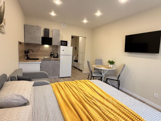 Сдаётся уютная студия с евроремонтом в современном доме в селе Высокое, Сочи. Квартира общей площадью 38 кв. м. находится на 2 этаже 3-этажного блочного дома, построенного в 2018 году. Высокие потолки в 3 метра создают ощущение простора, а окна выходят во двор, что обеспечивает тишину и комфорт. В квартире есть всё необходимое для комфортного проживания: кондиционер, холодильник, телевизор и стиральная машина. Интерьер выполнен в светлых тонах, что визуально увеличивает пространство. Совмещённый санузел оборудован душевой кабиной, что добавляет удобства. Студия имеет выход на балкон, где можно наслаждаться свежим воздухом и видом на окрестности. Дом находится в хорошем состоянии, ухоженная территория и благоустроенный двор. Рядом с домом есть магазины, что делает повседневные покупки быстрыми и удобными. Условия аренды: квартира сдаётся напрямую от собственника, без посредников. Долгосрочная аренда приветствуется. Залог составляет сумму месячной аренды. Рядом развязка дороги на Красную Поляну и Олимпийский парк