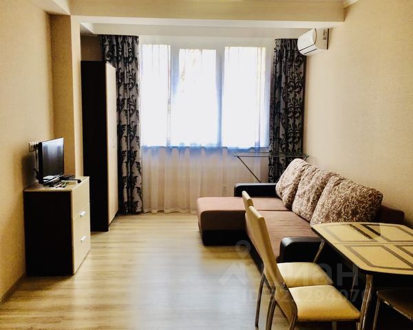 На длительный срок сдается однокомнатная изолированная квартира-студия от собственника. Расположена на I этаже пятиэтажного жилого дома, на окнах имеются решетки. Дом типа общежития, но кухня и санузел расположены в квартире, закрытый блок на 5 квартир, соседи дружелюбные, без вредных привычек. Квартира состоит из кухни, соединенной с комнатой, и санузла. В квартире имеется: кухонная мебель, стол и 3 стула, холодильник, микроволновая печь, сплит-система, гладильная доска, двуспальная кровать с ортопедическим матрацем, шифоньер, телевизор (кабельное ТВ), стиральная машина. Варочная печь электрическая, имеется вытяжка. В квартире выполнен хороший ремонт, ранее проживали сами, она никогда не сдавалась в аренду. Коммунальные услуги низкие. Арендная плата 28 000 рублей + коммунальные услуги. Обязательное условие это оплата сразу за 2 месяца (первый и последний) и заключение письменного договора. Риелторов, посредников, я просто показать и подобных - убедительно просим не беспокоить. Без торга. По вопросу изменения приведенных условий просьба не беспокоить, они окончательны. Предпочтение одиночному длительному проживанию. Цена на летний период не повышается. Снять квартиру-студию больше чем на год без посредников в районе Центральный в городе Сочи.
