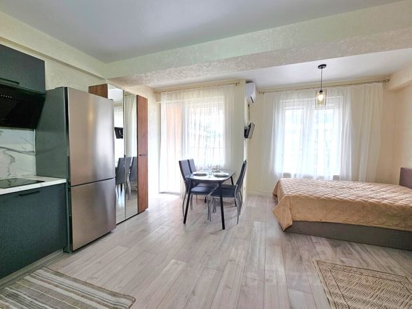 Квартира с террасой и зеленой зоной с потрясающим видом на море и Сочи! Планировка с виражными окнами, выходом на собственную террасу, выделен кабинет, совмещеный санузел и гардероб. Сдается без повышения стоимости на летние месяцы! Для вас доступно: - Подогреваемые бассейны с лежаками и зонами бунгало (май-сентябрь) - Два ресторана с возможностью заказа блюд в апартаменты - Бесплатная парковка - Тренажёрный зал (Оплачивается отдельно) - Территория для прогулок с тропическими растениями, потрясающими видами на море и город - Для детей на территории нашего комплекса предусмотрены детские площадки, бассейн с дежурными спасателями, специальное меню в ресторане, а также частный детский сад с развлекательными и обучающими программами. До ближайшего пляжа 10 минут на машине, у нас своя дорога по которой вы без пробок можете ездить на пляж! Правила заселения: -Страховой депозит в зависимости от количества месяцев бронирования. Вноситься менеджеру при заселении и возвращается сразу при выезде, при условии что имущество целое. -Проживание с домашними животными запрещено. Снять квартиру-студию в поселке городского типа Дагомыс Краснодарского края на длительный срок.