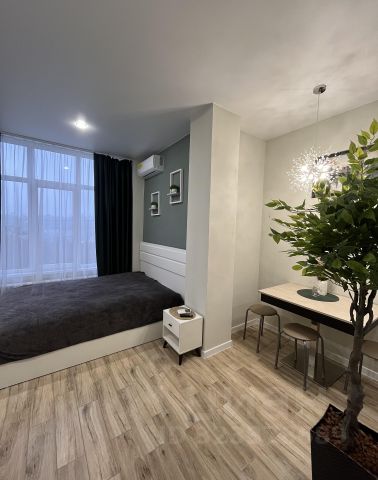 Сдаётся квартира-студия на длительный срок. Дом расположен в районе с развитой инфраструктурой. В шаговой доступности остановка общественного транспорта, круглосуточные магазины, минимаркеты, фитнес клуб, ярмарка, детские клубы. Отличная транспортная доступность, в 5 минутах езды находится ТРЦ "Олимп" и ТРЦ "Моремолл". До моря 5 минут на автомобиле. Квартира в стиле Лофт. Оснащена всем необходимым для жилья и отдыха: холодильник, утюг, стиральная машина, газовая плита, духовой шкаф, сплит-система, телевизор и интернет. Все вопросы уточняйте по телефону.