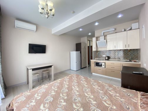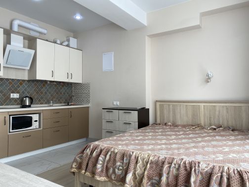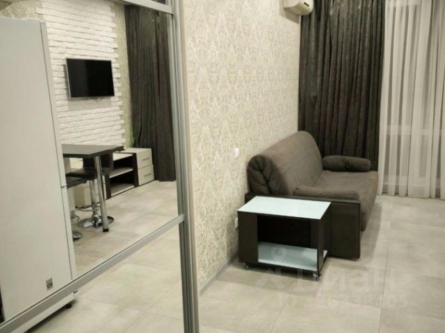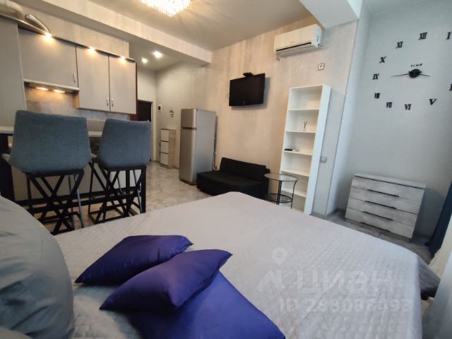 Сдаётся уютная студия с дизайнерским ремонтом в микрорайоне Мамайка, Сочи, на Волжской улице, 81Б. Общая площадь апартаментов составляет 38 кв. м, из которых 36 кв. м жилая площадь. Студия расположена на 2-м этаже 6-этажного дома. Высокие потолки в 2,9 метра добавляют пространству воздуха и света. В интерьере студии использованы современные дизайнерские решения. В квартире есть всё необходимое для комфортного проживания: кондиционер для поддержания комфортной температуры, телевизор для приятного времяпровождения, стиральная машина для удобства. Совмещённый санузел оборудован ванной, что позволяет расслабиться после долгого дня. Окна выходят во двор, поэтому в квартире тихо и спокойно. Дом находится в хорошем состоянии, есть наземная парковка, где всегда можно найти место для автомобиля. Удобное расположение обеспечивает доступ к интернету, что всегда актуально для работы и развлечений. Рядом с домом расположены школы и магазины, что делает жизнь здесь удобной и комфортной. Вся необходимая инфраструктура в шаговой доступности, а транспортная развязка позволяет быстро добраться до центра города и других районов Сочи. Аренда осуществляется без комиссии. Возможно заключение договора на длительный срок. При заселении требуется внесение залога. Студия идеально подойдёт для одного человека или пары, желающих жить в современном и комфортном жилье. Звоните и записывайтесь на просмотр! Мы с радостью покажем вам эту замечательную студию и ответим на все ваши вопросы. Снять квартиру-студию в микрорайоне Мамайка в городе Сочи на длительный срок.