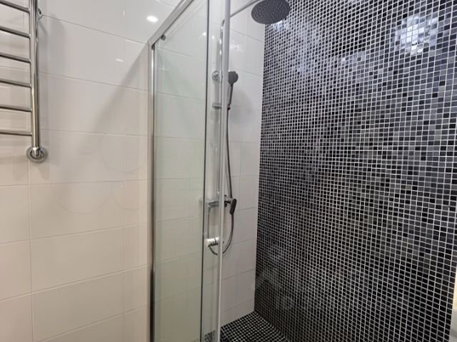 5. Совмещенный сан-узел: душ, туалет, полотенцесушитель, большое зеркало с подсветкой.