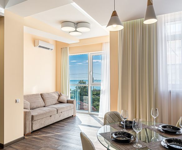 Сдается на длительный срок-до лета (май включительно). БЕЗ КОМИССИИ! Квартира с балконом и чудесным видом на море! 1. Полностью укомплектована всем необходимым для комфортного пребывания: двуспальная кровать, двуспальный раскладной диван, шкаф для одежды. 2. Выделенная обеденная зона и оборудованная кухня: холодильник, встраиваемая варочная панель, вытяжка, микроволновая печь, чайник, посуда, столовые приборы. 3. Электроника и оборудование: смарт-телевизор, быстрый стабильный WI-FI, сплит-система, стиральная машина, фен, утюг, гладильная доска, сушилка для белья. 4. Совмещенный сан-узел: ванна, туалет, гигиенический душ. 5. В стоимость проживания входит: комплект белого постельного белья и полотенец. Преимущества района с развитой инфраструктурой: - До лучших городских пляжей с прозрачной водой - 300м. - Рядом расположены столовые, кафе, рестораны, кофейня/кондитерская (Корица), розничные магазины Магнит, Пятерочка - 300м. - До автобусной остановки - 100м. - До ж/д станции Мамайка - 200м. - До центра Сочи (ЖД вокзал) на авто/такси 10 мин.